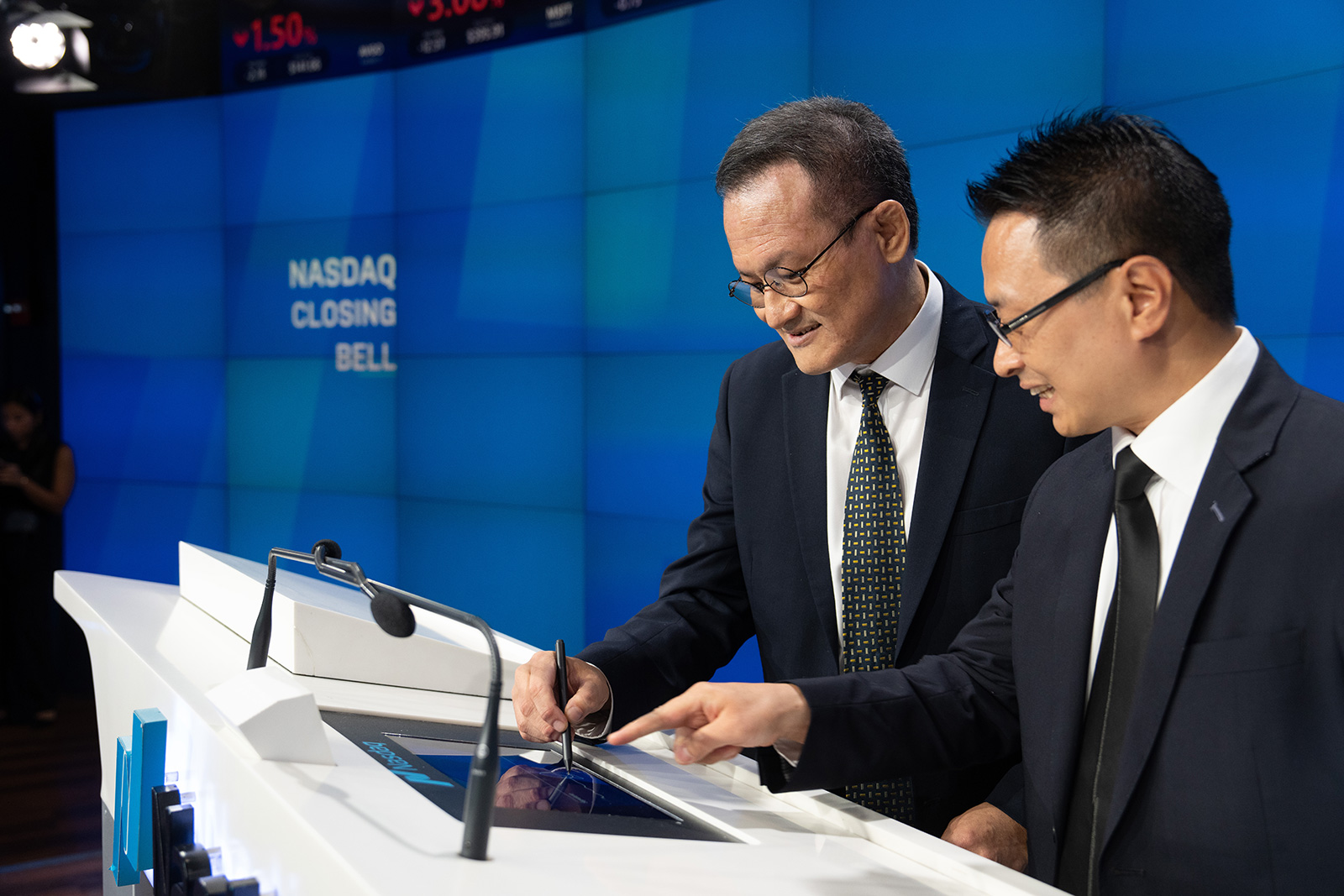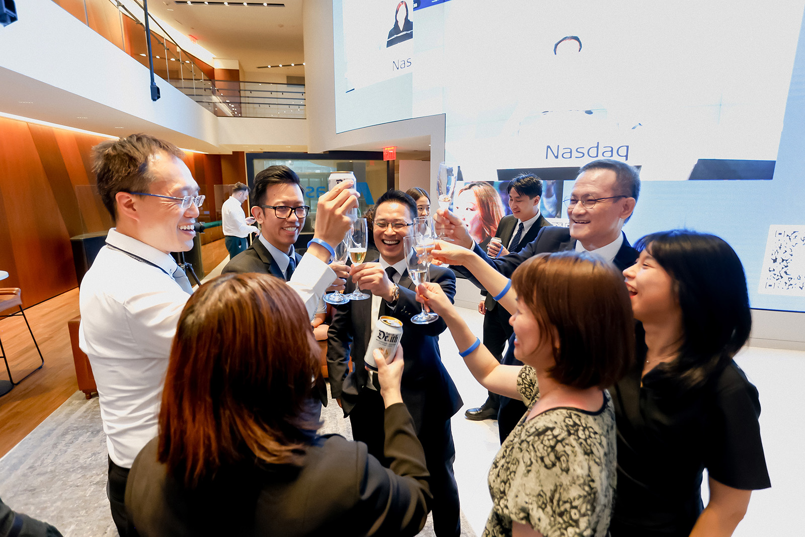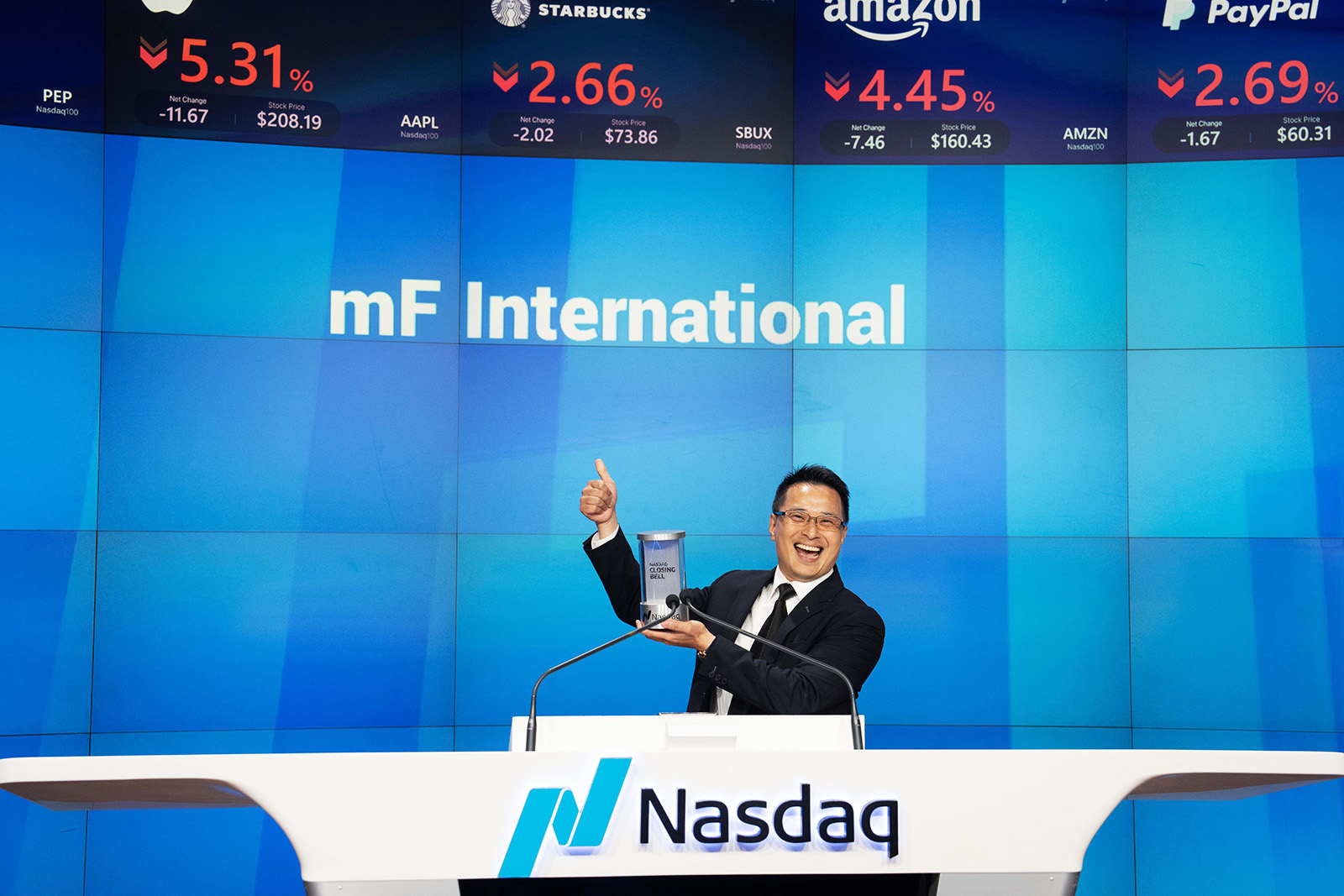 The bell-ringing ceremony was first hosted by a NASDAQ executive, who gave a welcome speech. Then Mr. Dick Tam, CEO and co-founder of mF International, delivered a brief opening remark. At 3:59:50 pm, guests and the audience counted down together to strong music accompaniment, and at exactly 4:00:00 pm, the NASDAQ closing bell was rung. Applause, cheers and shouts filled the venue, bringing the atmosphere to a climax. This important ceremony was also broadcast live on NASDAQ’s iconic seven-story screen in Times Square and via satellite to Bloomberg, CNBC, FOX Business Network and BNN.