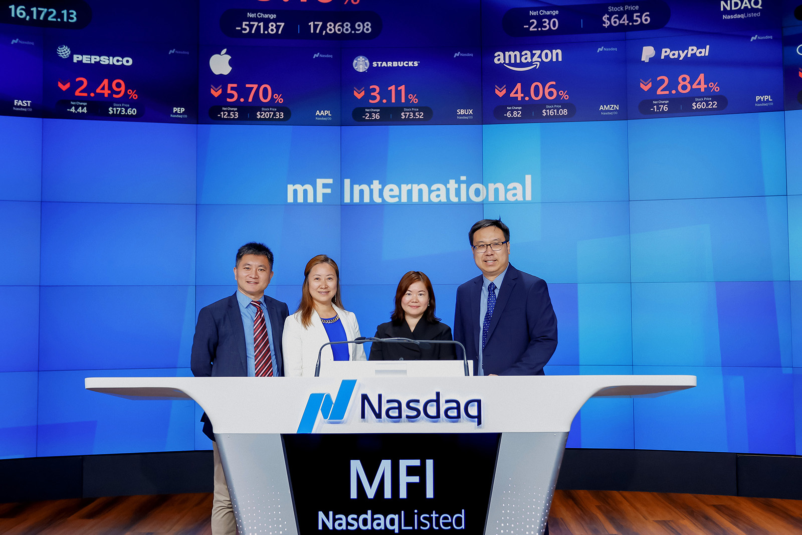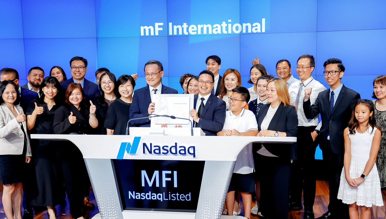 The holding company of Asia's leading forex and bullion trading system provider, m-FINANCE Limited (“mF” or “m-FINANCE”), mF International Limited (NASDAQ: MFI), celebrated its official NASDAQ listing with a bell-ringing ceremony at the NASDAQ Stock Exchange on August 5, 2024, US time.